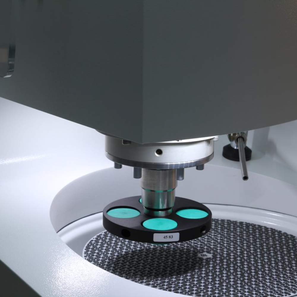 The specimen mover head has motorized positioning in horizontal and vertical directions with memory function. The force on the specimen 'individual" or "central" is pneumatically controlled by a pressure transducer. Optional grinding depth measurement system allows you to measure the amount of material removed from the surface. The desired grinding depth can be set to grind different type of samples and also for applications that need special accuracy.